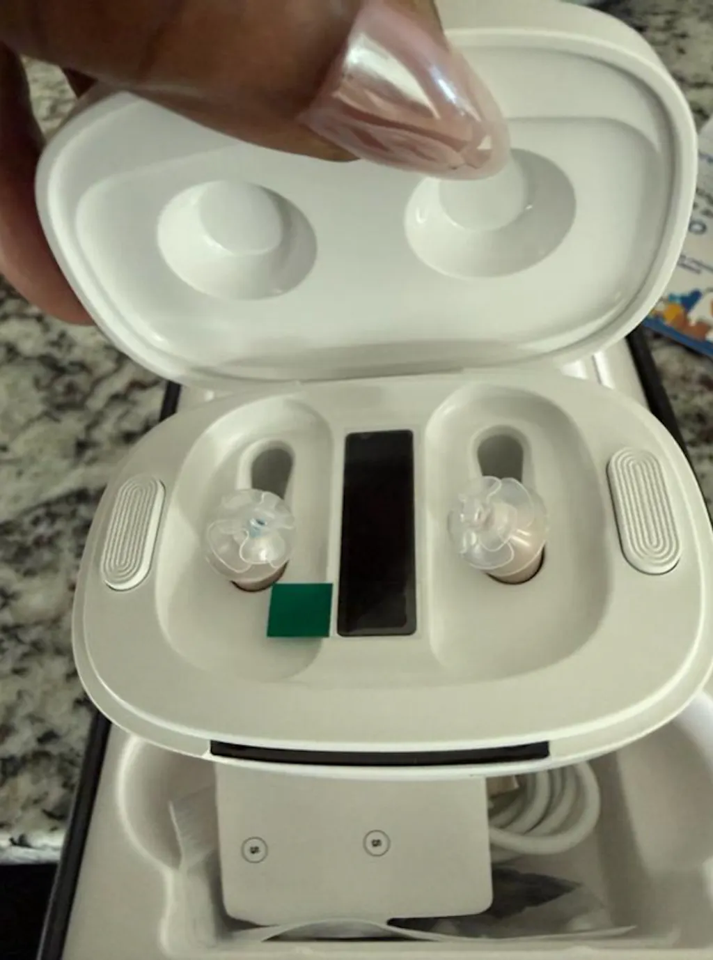 - Or long-press (3 seconds) the charging case button while the device is inside.
