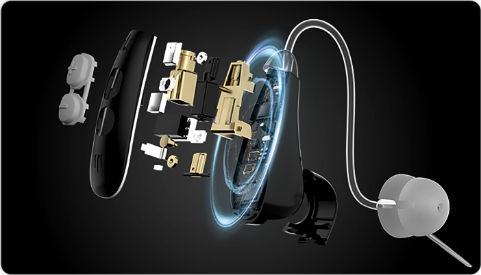 Nexus BTE hearing aids sit behind your ear, transmitting sound through a small tube into an earmold that fits inside your ear canal.